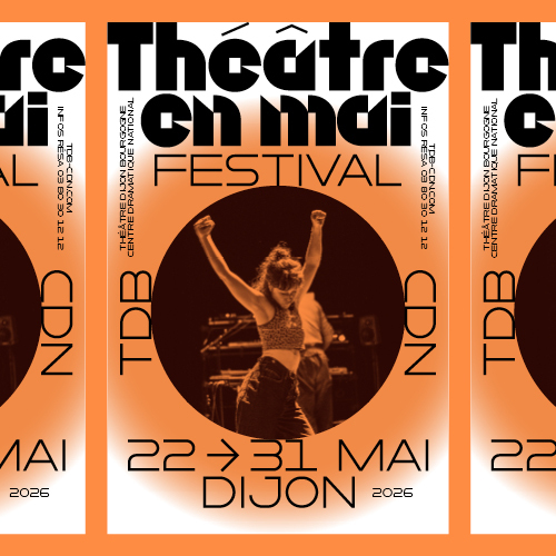 Plan anzeigenRendez-vous incontournable du mois de mai à Dijon, le festival Théâtre en mai revient pour sa 36° édition. Festival des écritures vivantes, il célèbre la scène contemporaine dans toute sa diversité : créations, formes hybrides, regards émergents et envolées hors les murs s'invitent dans la ville et l'espace public. Temps fort festif, engagé et ouvert sur le monde, Théâtre en mai est un moment de rencontre entre artistes, spectateur·rices et professionnel·les, porté par une énergie joyeusement collective.